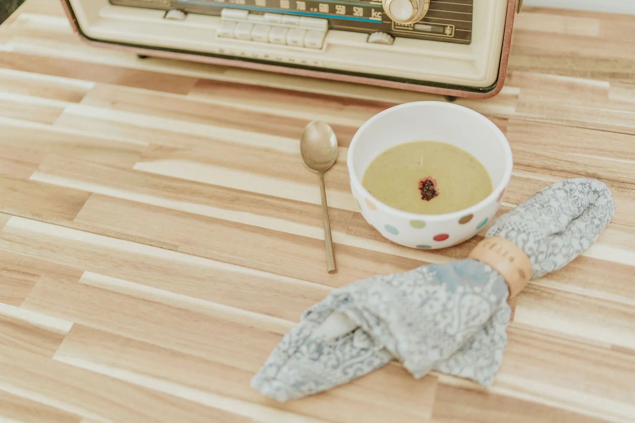 Serve it chilled with the asparagus tips chopped up on top and perhaps a little drizzle of your favourite flavoured oil. I used chilli crisp this time.
